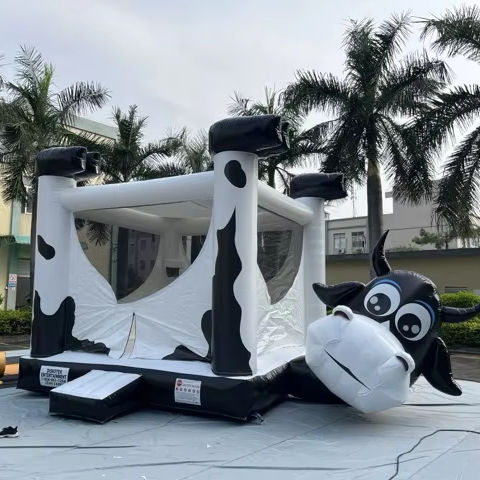 Maison de rebond gonflable pour vache durable Château sautant blanc et noir pour fête et location sur le thème de la ferme Idéal pour l'intérieur et l'extérieur