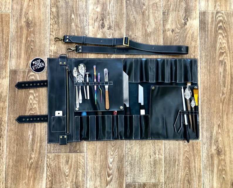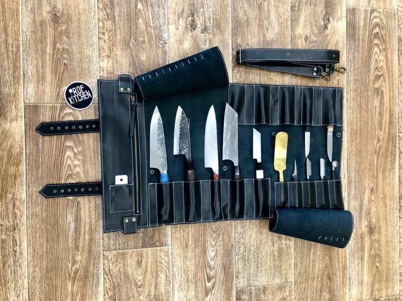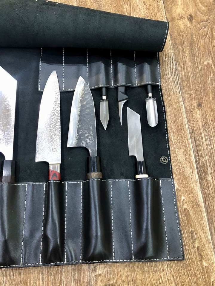Organisateur de couteaux de chef en cuir véritable durable, de luxe, décontracté, multifonctionnel, portable LBKR-0060