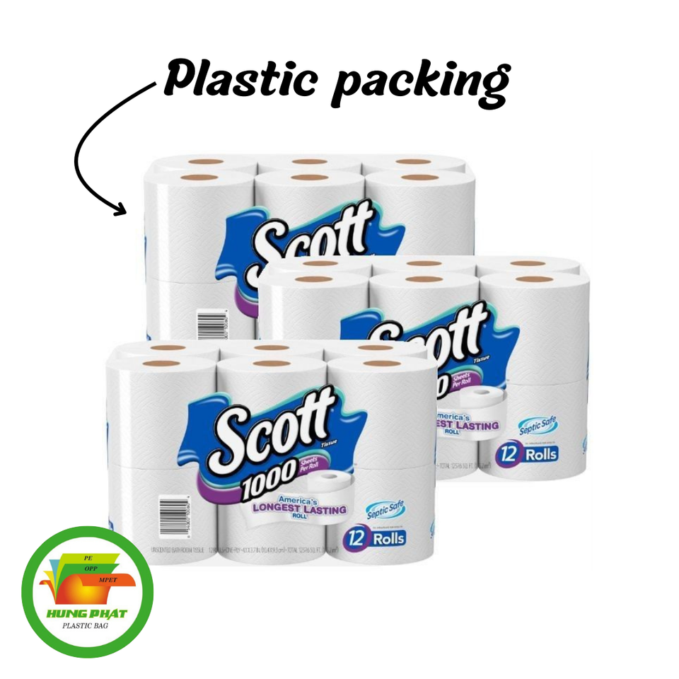 Sacs durables en plastique PE personnalisés à 4 couches, solution durable, écologique et élégante pour l'emballage de papier hygiénique à usage domestique