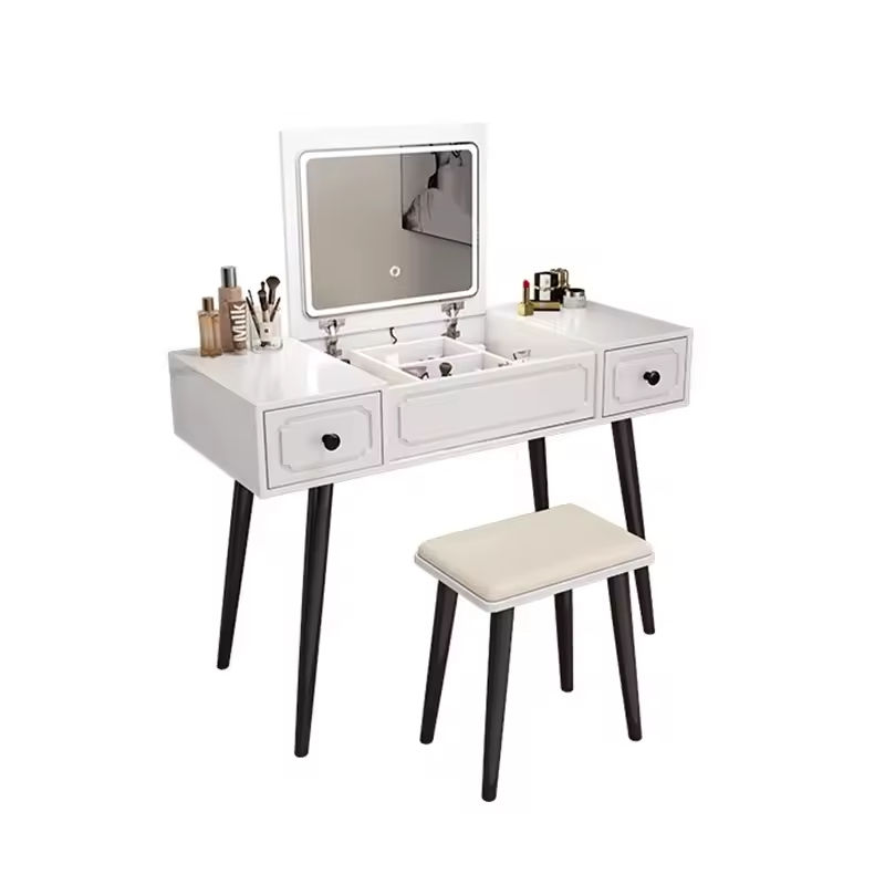 Table de toilette compacte de luxe moderne et durable avec grands tiroirs de rangement et miroir LED pour chambre d'hôtel