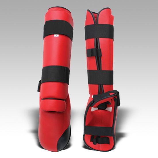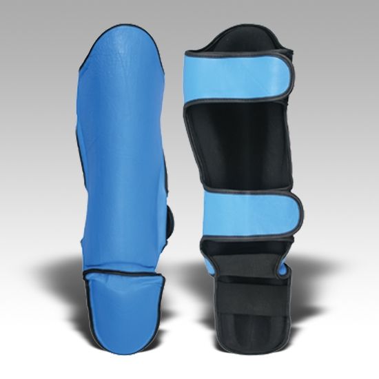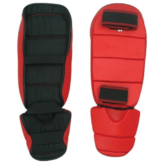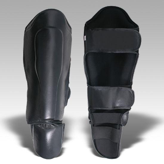Protège-tibia en cuir tactique noir personnalisé durable Protection complète Sangle chaude Logo Emballage Carte Crochet Boucle de poids