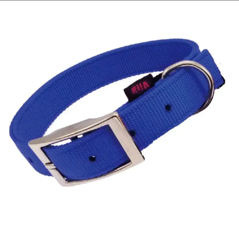 Collier de dressage de chien en nylon double couche durable de qualité en gros avec boucle en métal à dégagement rapide motif solide classique