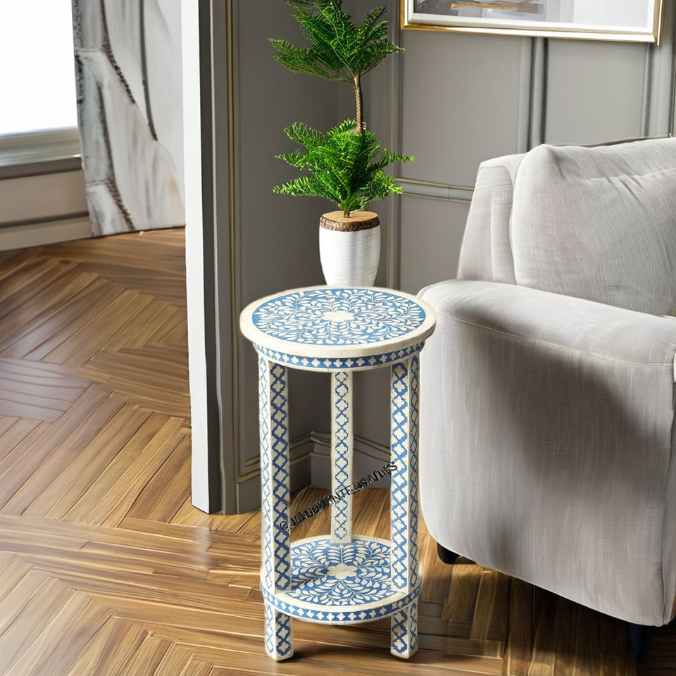 Tabouret rond en os incrusté, fait main, moderne, durable et écologique pour le salon