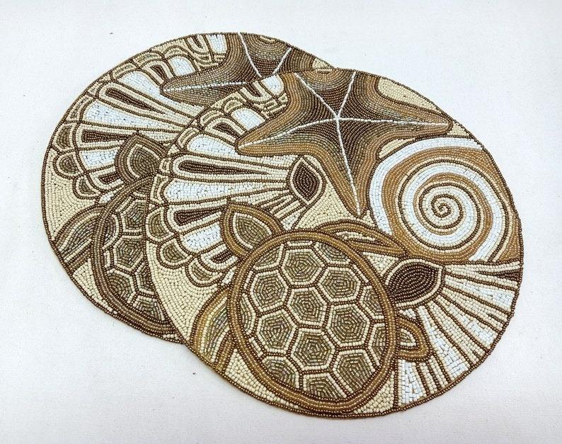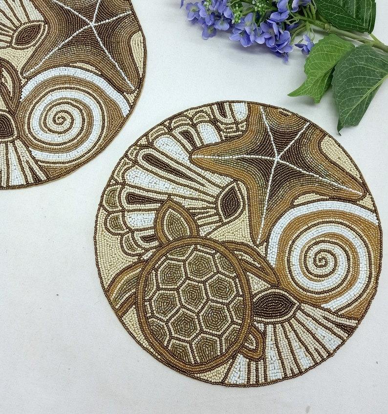 Durable Eco-friendly Customizable Beaded Placemats Wedding Party Handmade Modern Dining Table Mat Decor Floral Embroidered