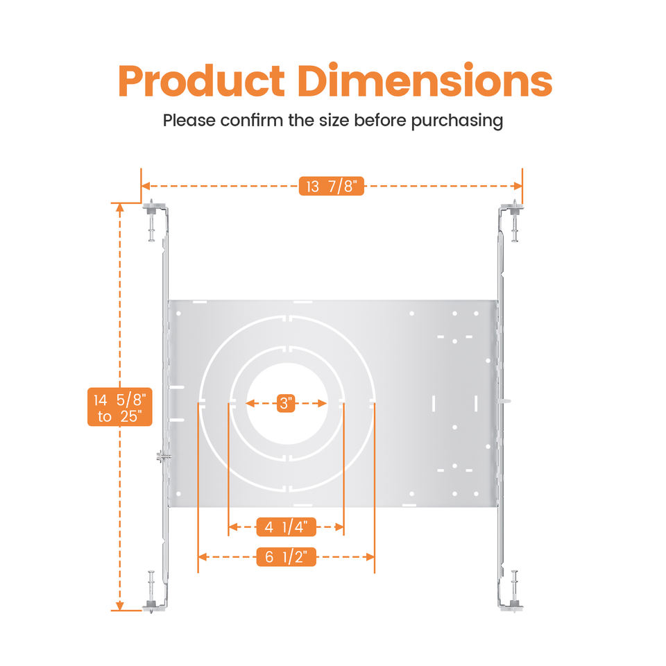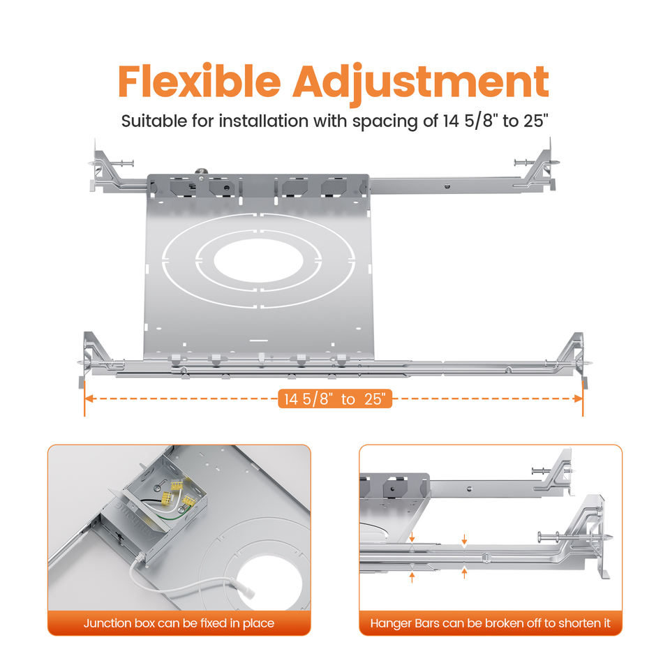 Plaque de montage ronde extensible durable pour nouvelle construction, 160 mm (6 po), avec barre de suspension et rebords