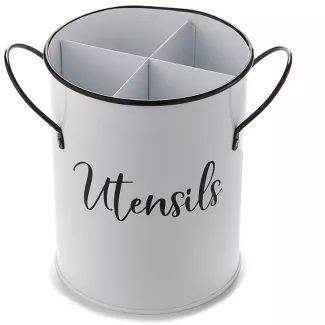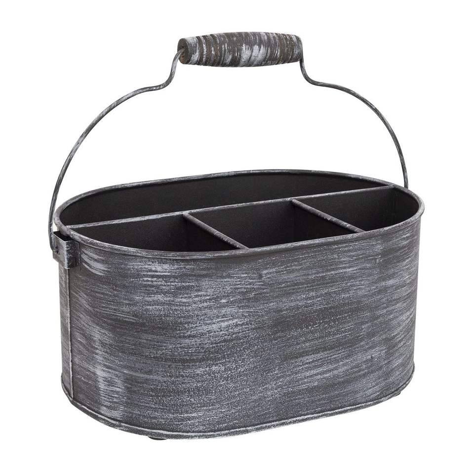 Organisateur de couverts en métal galvanisé durable de style rustique avec poignée en bois, gris rustique, pour la cuisine et la maison