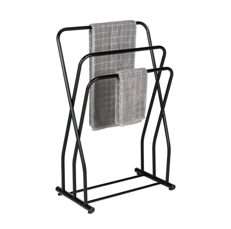 Porte-serviettes métallique autoportant à 3 niveaux, finition noire moderne, durable, pour salle de bain, douche ou lavabo, vente directe usine