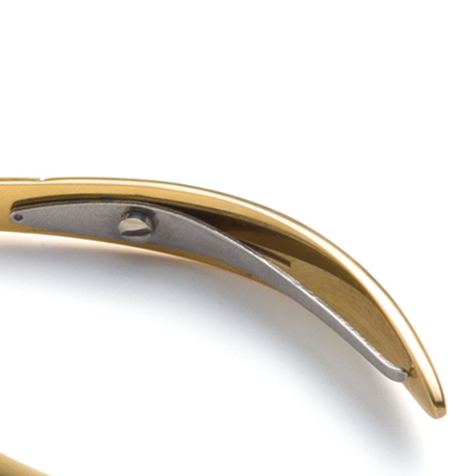 Pince à ongles demi-cuticule dorée durable avec lames tranchantes Pince à ongles à cuticules à motif rond pour la beauté et la pédicure