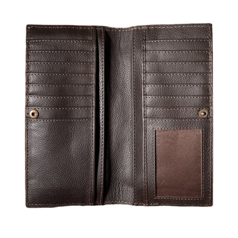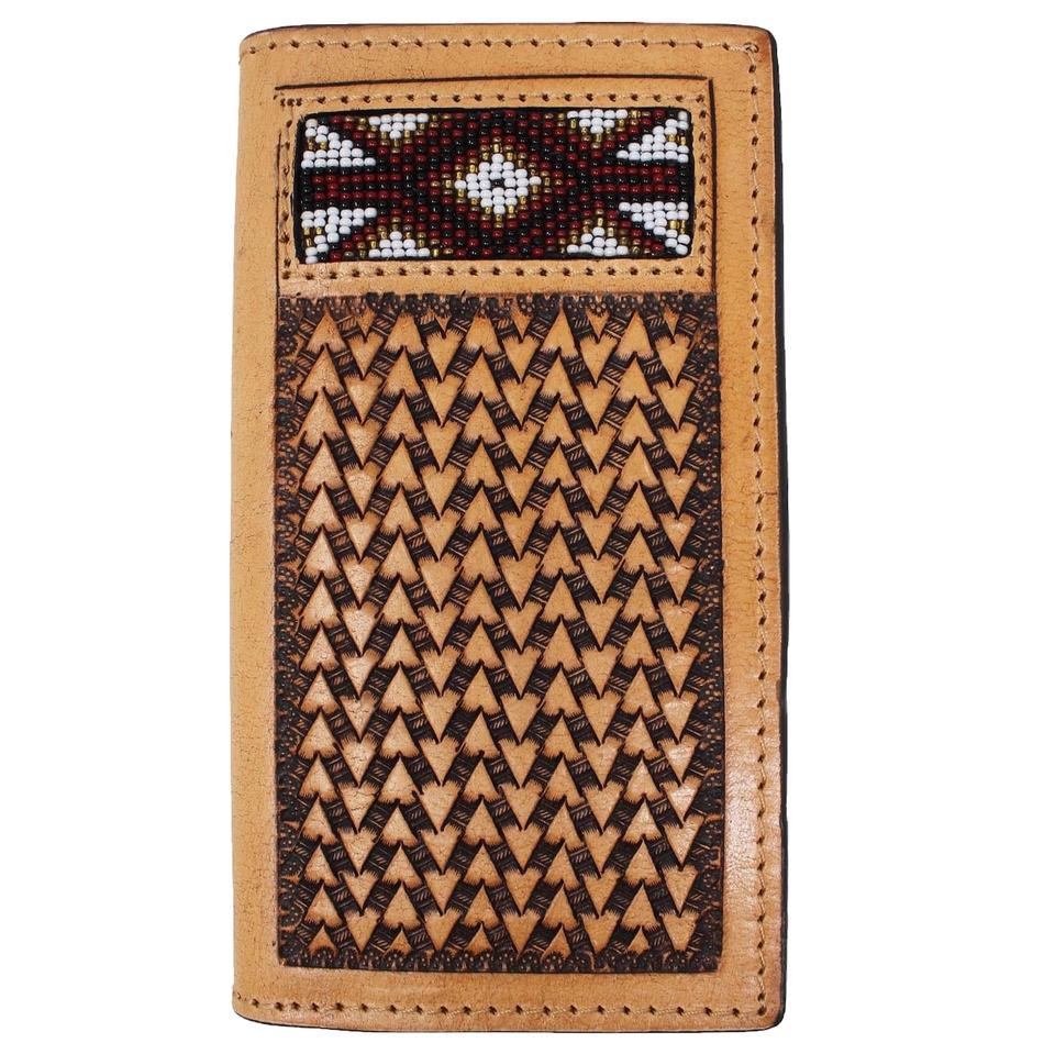 Portefeuille long unisexe durable fait main, style bohème, en cuir véritable marron perlé et rayé, avec fermeture éclair et détails western