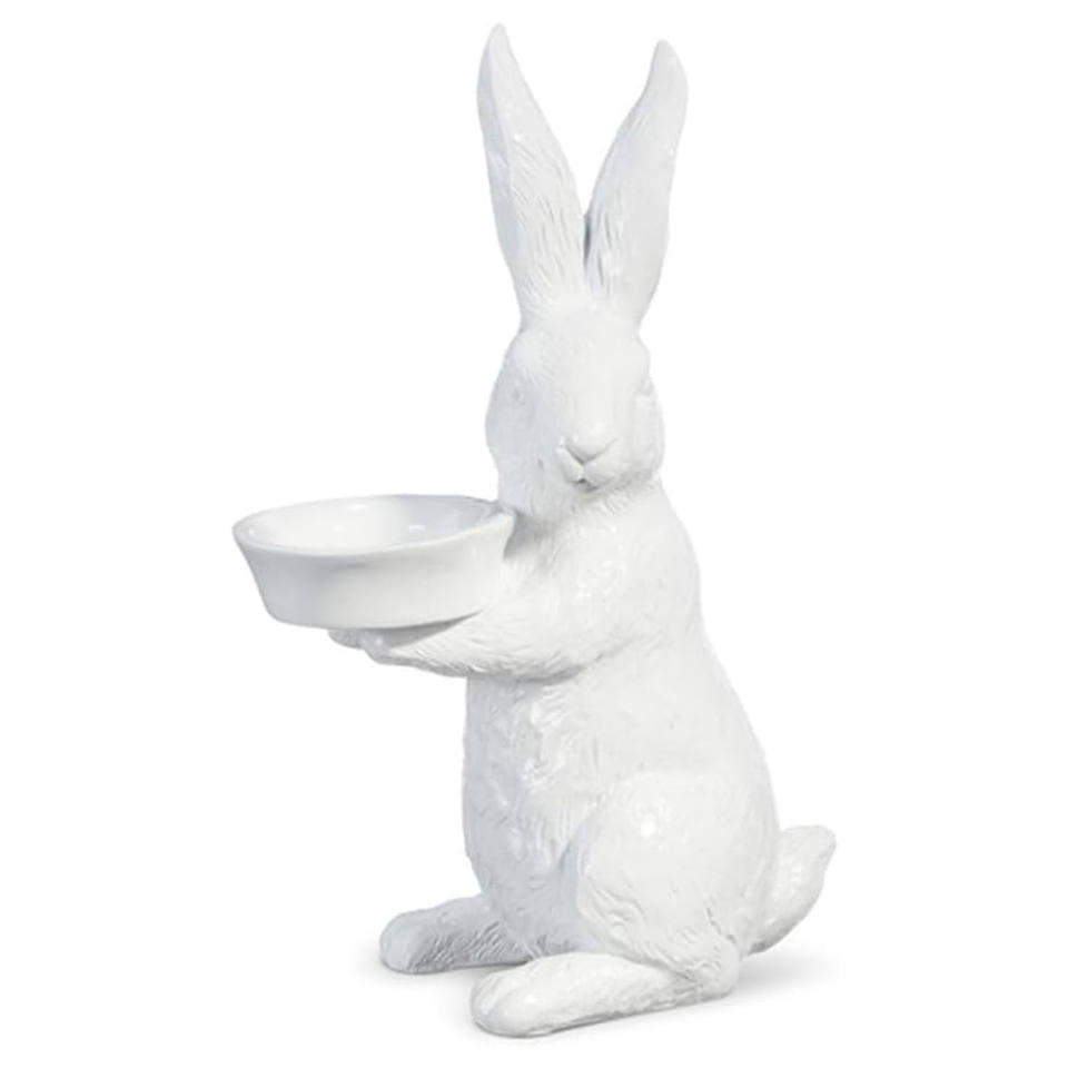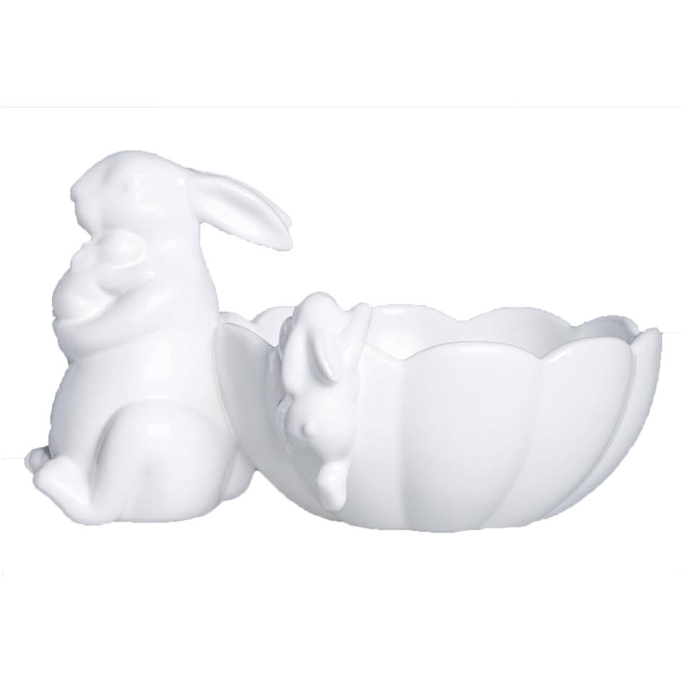 Bol de serveur de bonbons blanc en aluminium moulé durable fait à la main Lapin de table pour la décoration de Pâques par Ambience Lifestyle