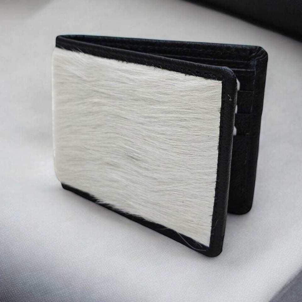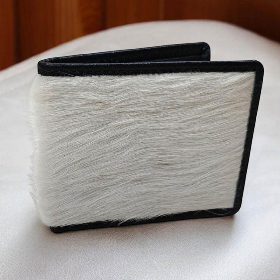 Portefeuille en cuir de vachette véritable fait main, durable, pour homme, design fin, portefeuille à double pli, cuir à poils.
