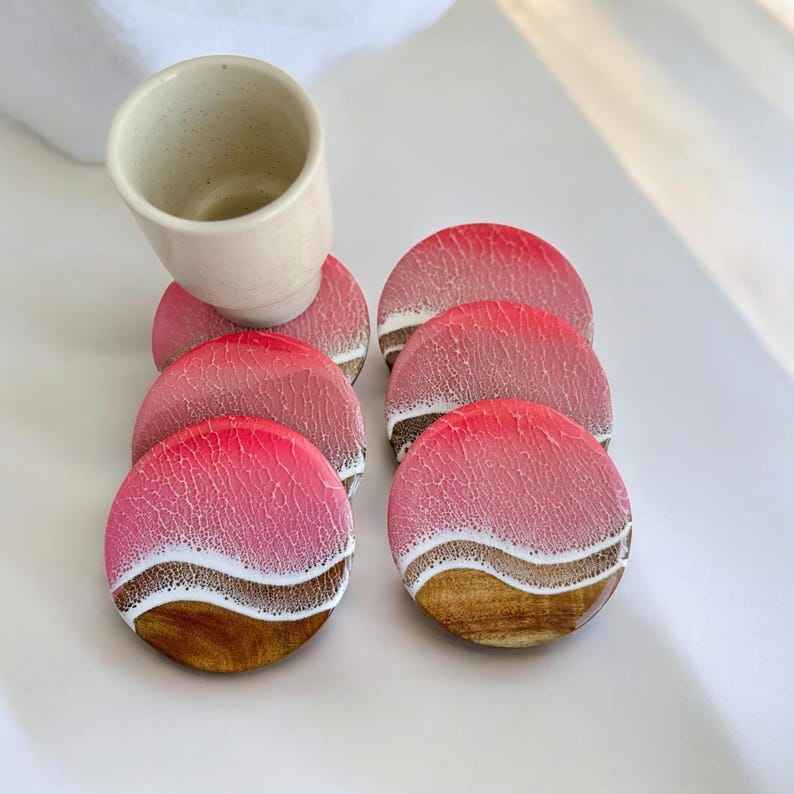 Ensemble de dessous-de-verre en bois et résine naturelle, durables et faits à la main, protégeant les meubles de la chaleur et de l'eau tout en ajoutant un charme rustique élégant
