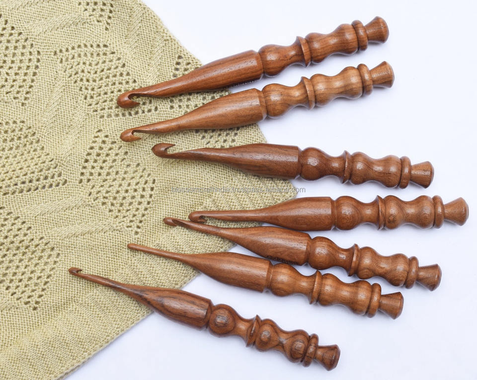 Collection de crochets en bois faits à la main durables, finition lisse, parfaits pour les tricoteuses et artisans professionnels