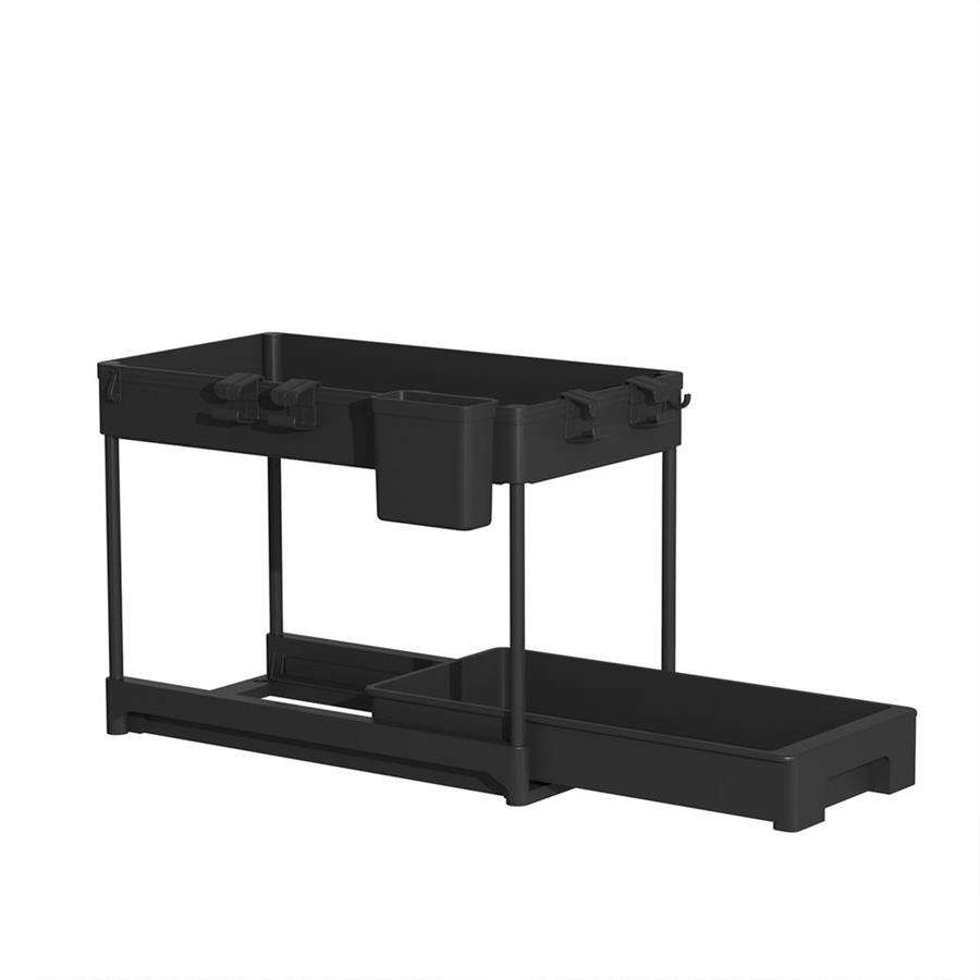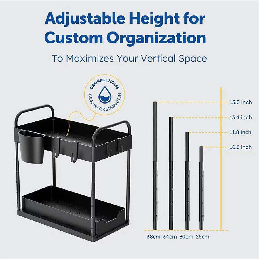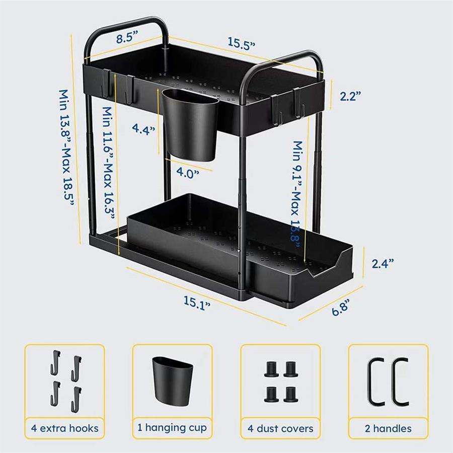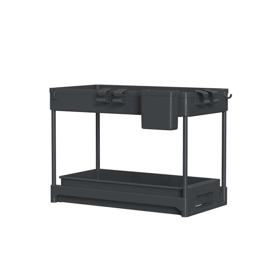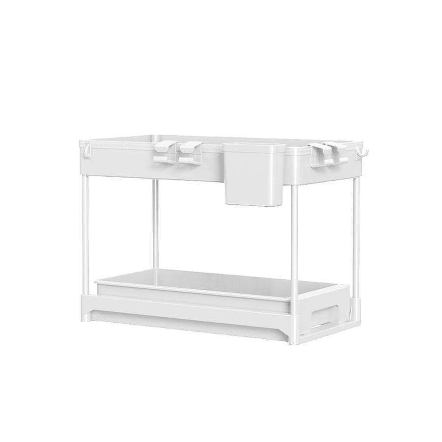 Organisateur de tiroir de rangement de haute qualité Durable à 2 niveaux coulissant sous l'armoire de salle de bain avec crochets