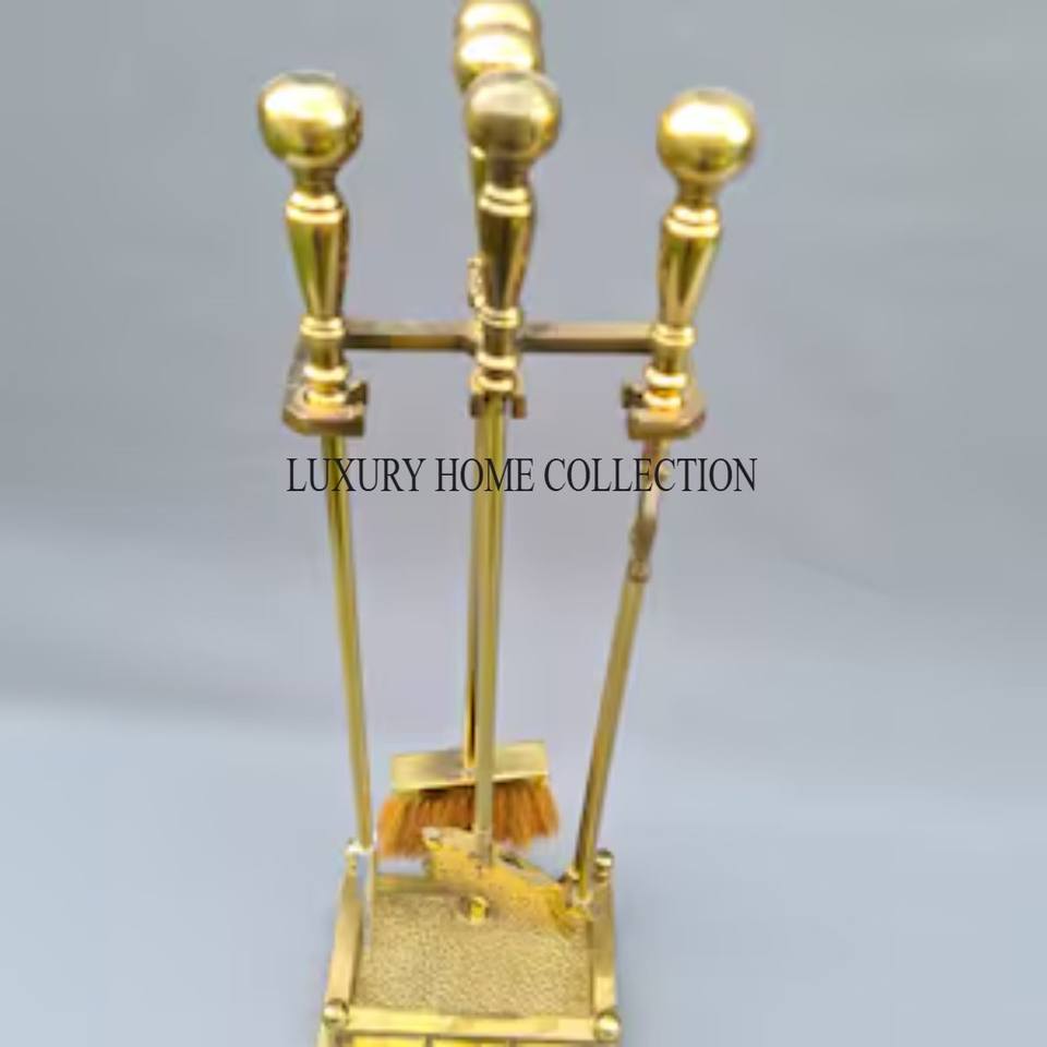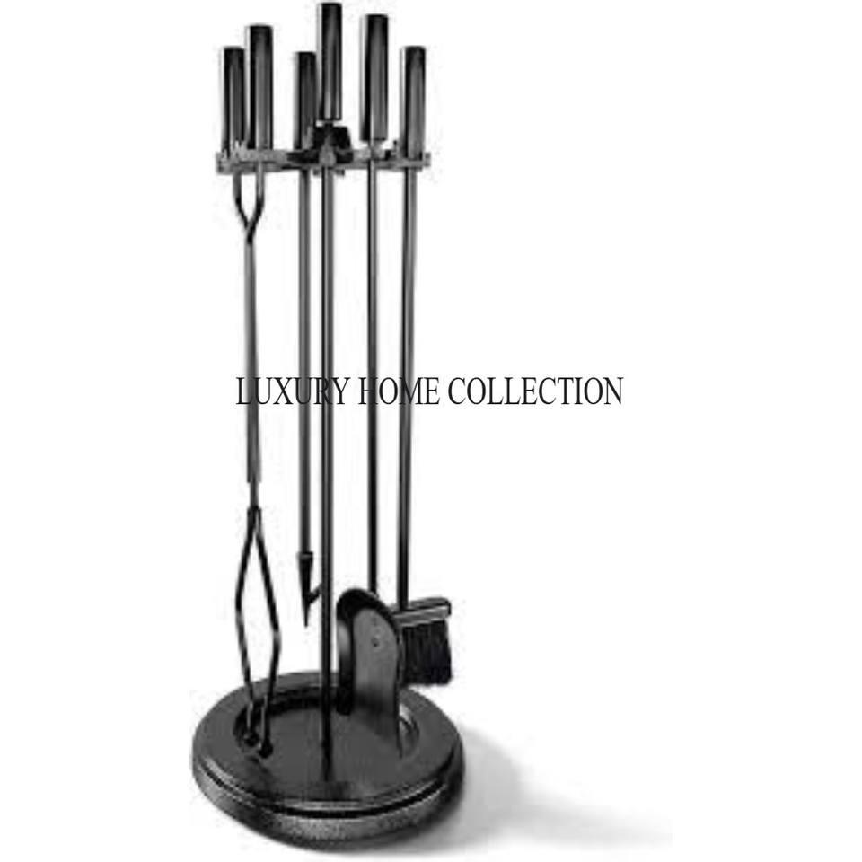 Ensemble d'outils de foyer en fer durable antirouille avec pinces à brosse de poker pour un entretien facile et sûr du foyer extérieur, y compris un porte-bûche