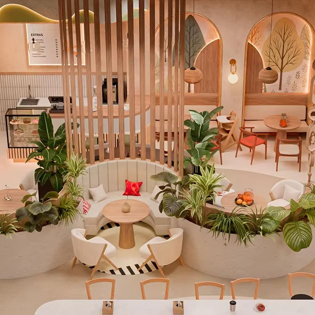 Aménagement durable pour restaurants d'enfants, design d'intérieur de magasins, équipement de parcs de jeux pour enfants, décoration et mobilier d'usine