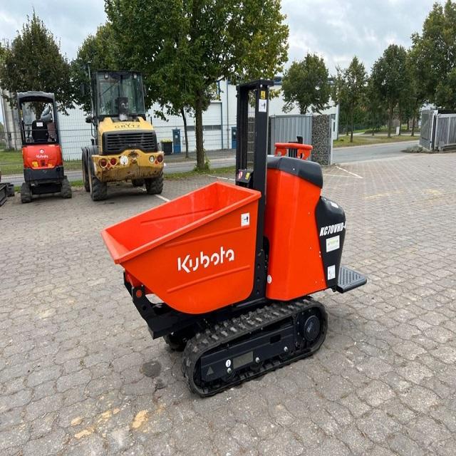Dumper compact sur chenilles Kubota robuste, conçu pour le transport de charges lourdes dans les zones à accès restreint avec une mobilité puissante