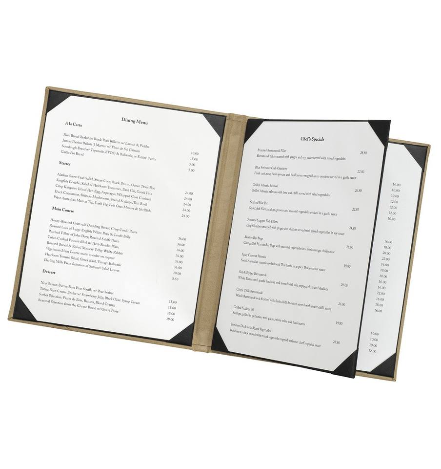 Couvertures de menu A4 en cuir durable Porte-cartes de menu de dossier en cuir d'hôtel personnalisé/Menu de couverture rigide de restaurant A4 en cuir