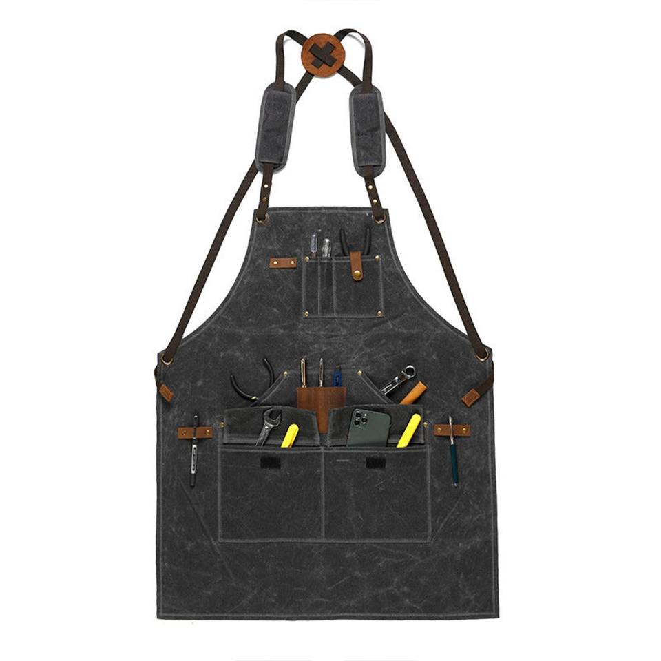 Tablier de travail en cuir et toile durable avec fermeture éclair, étanche, antichoc, 4-6 compartiments, pour chef, barbier, charpentier LCA-0062