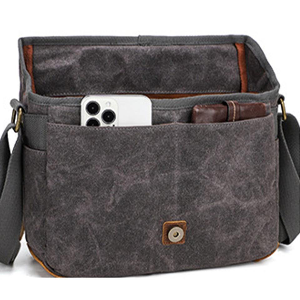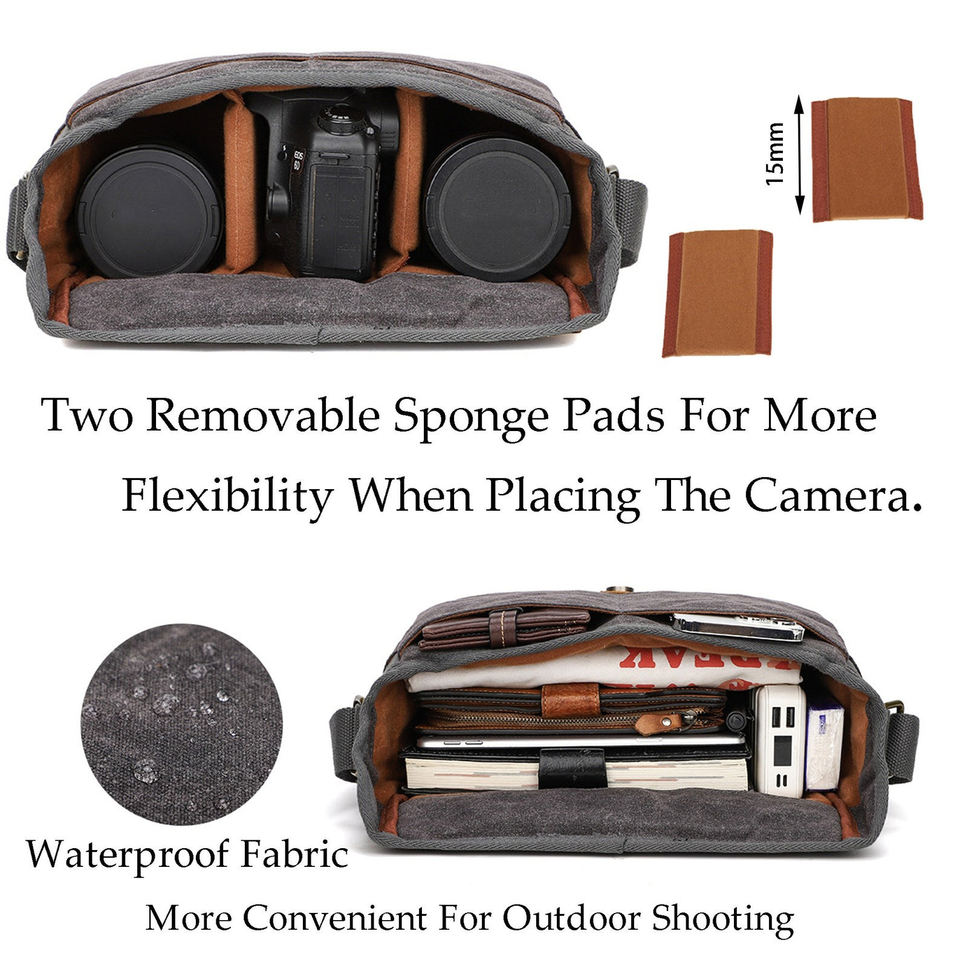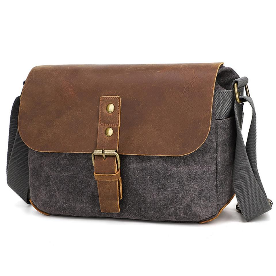 Sac à bandoulière professionnel pour appareil photo reflex numérique en cuir et toile durable avec fermeture éclair, étanche et antichoc LCCB-0006
