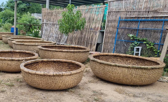 Coracle rond en bambou durable et léger, adapté aux stations de pêche et aux marchés d'exportation