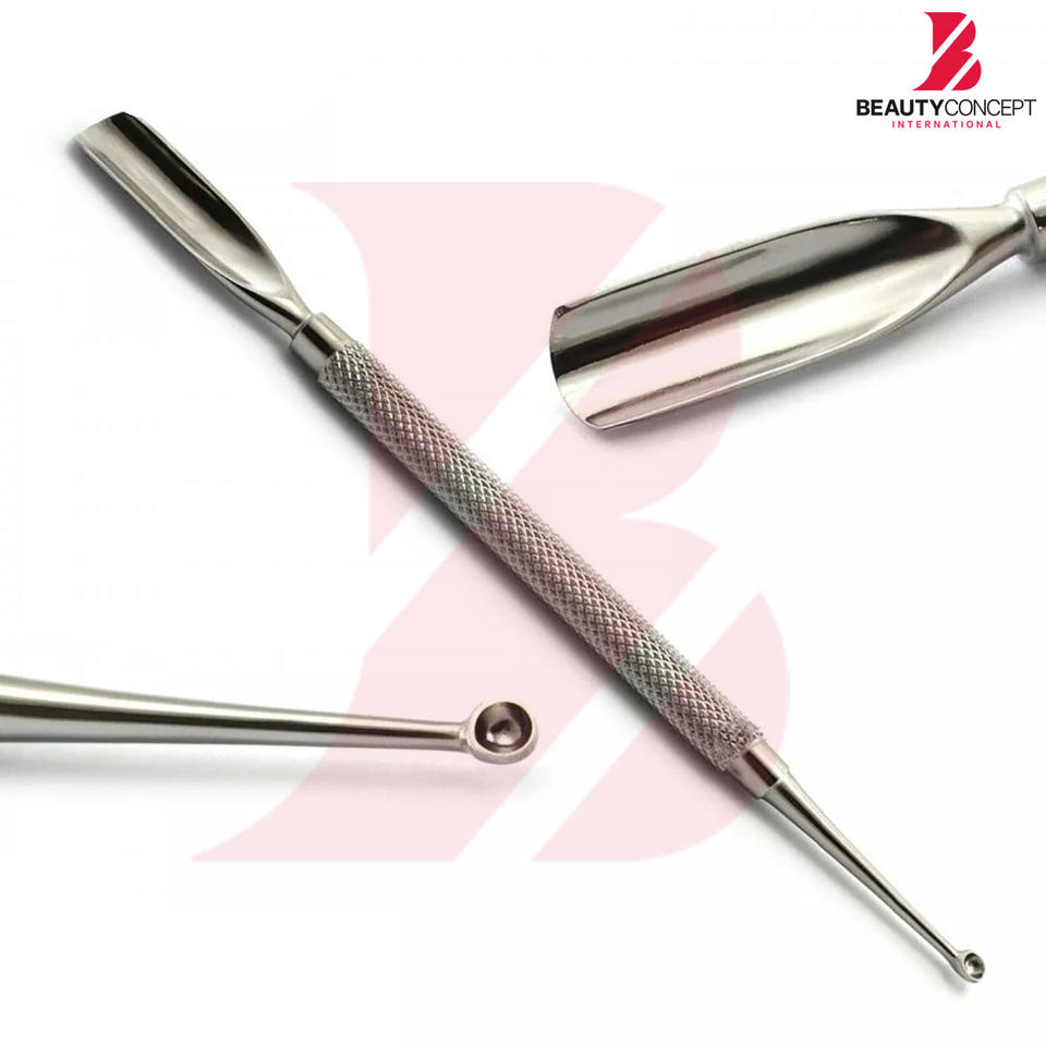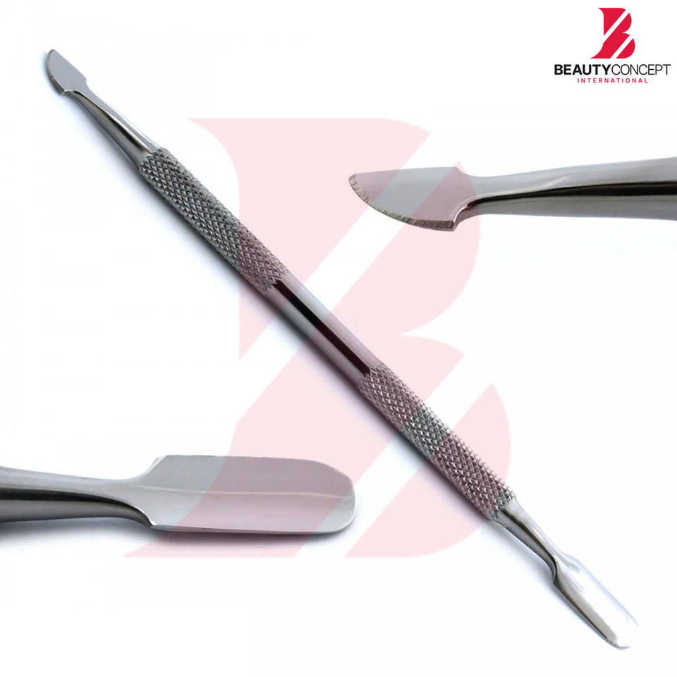 Pousse-cuticules durable et léger en acier inoxydable couleur argent, double extrémité, poignée antidérapante, résistant à la rouille, pour manucure