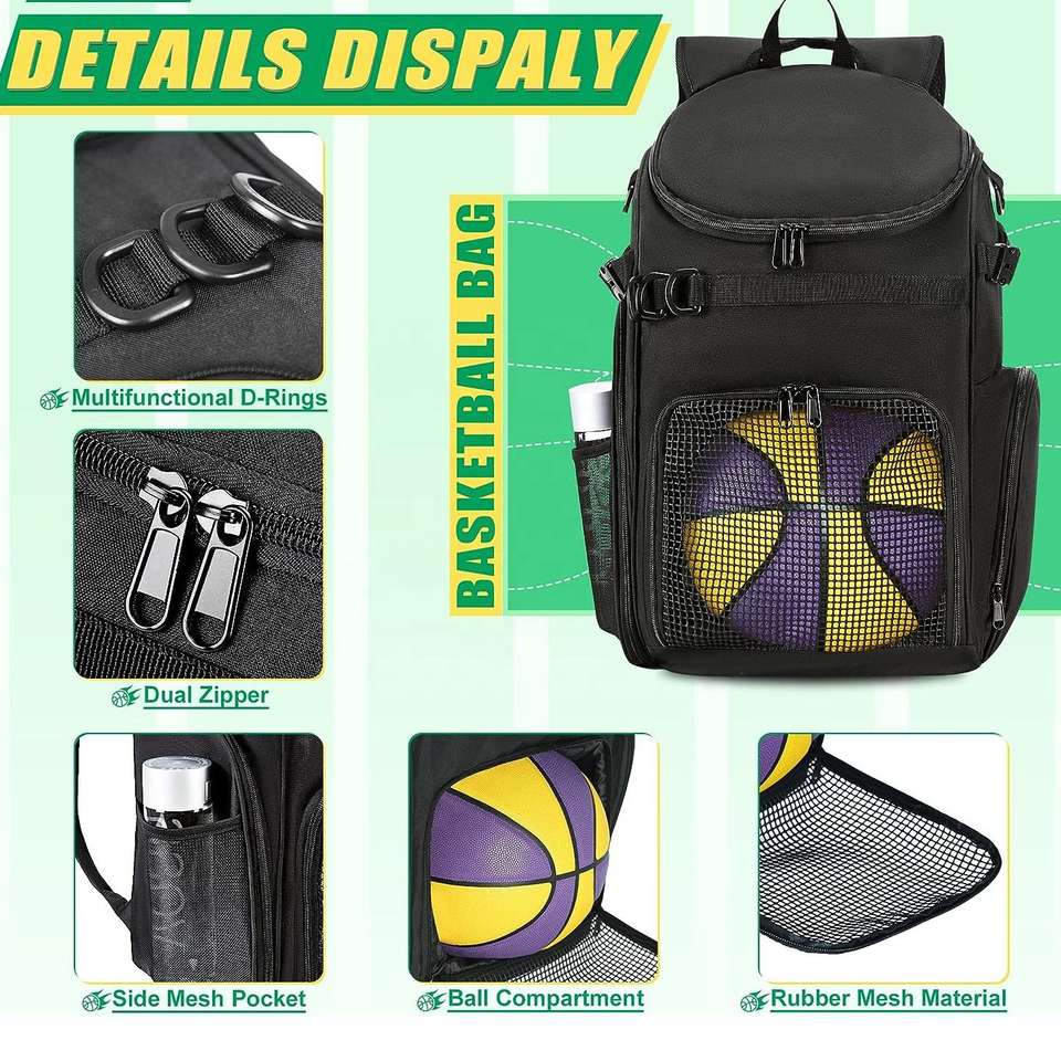 Sac à dos de sport unisexe pliable et léger avec fermeture éclair pour basketball, football américain, volleyball et autres équipements sportifs