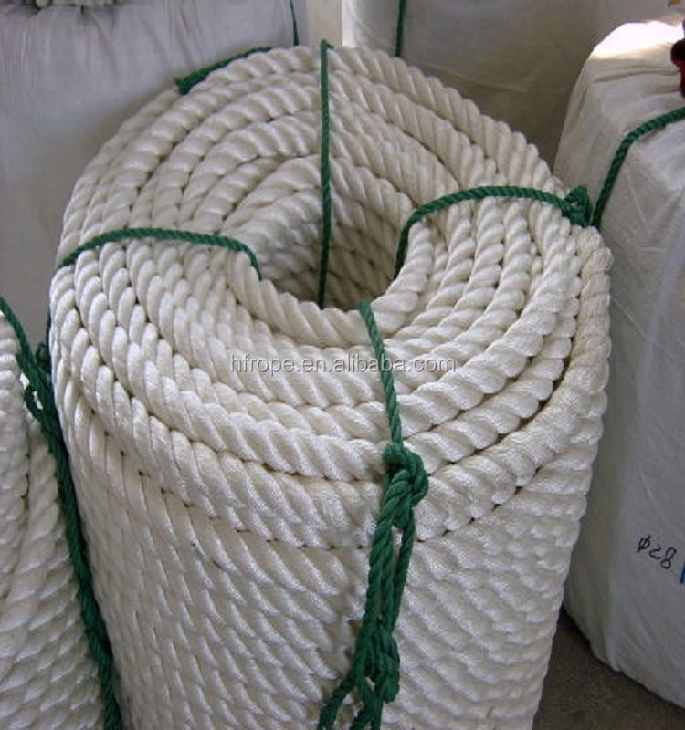 Corde durable à 3 brins de couleur blanche à faible élongation 16mm 20mm 28mm * 220m pour l'emballage de la corde d'emballage de sécurité de la fronde