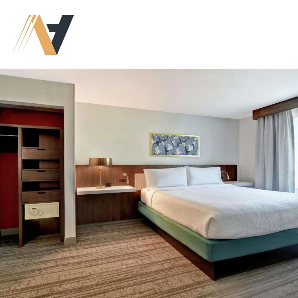 Ensemble de meubles de chambre d'hôtel en MDF durable pour la rénovation et la réaménagement de chambres d'hôtes commerciales Hilton Garden Inn
