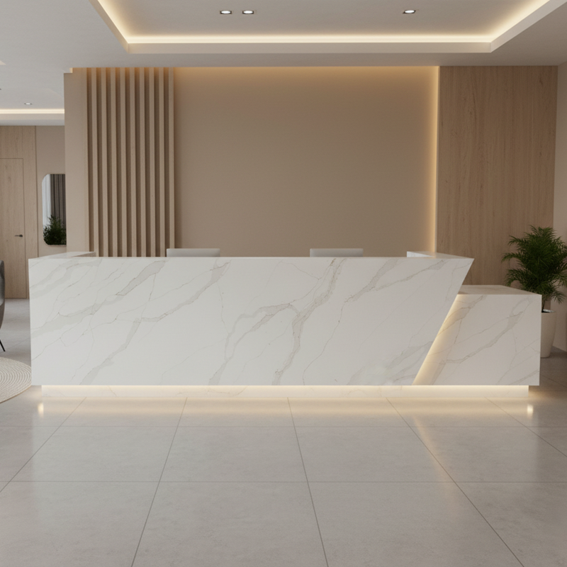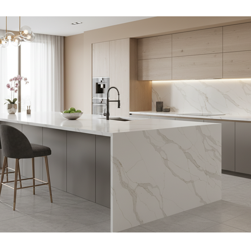 Dalles de pierre artificielle en quartz de style marbre durable, quartz blanc Calacatta, plan de travail, meuble-lavabo de salle de bain, îlot de cuisine