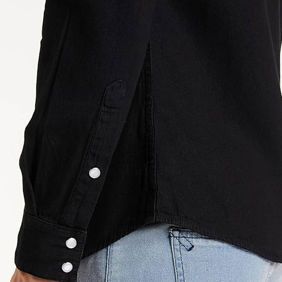 Chemise en jean en tissu durable avec boutons sur le devant et design pratique, chemise en jean élégante pour tous les jours