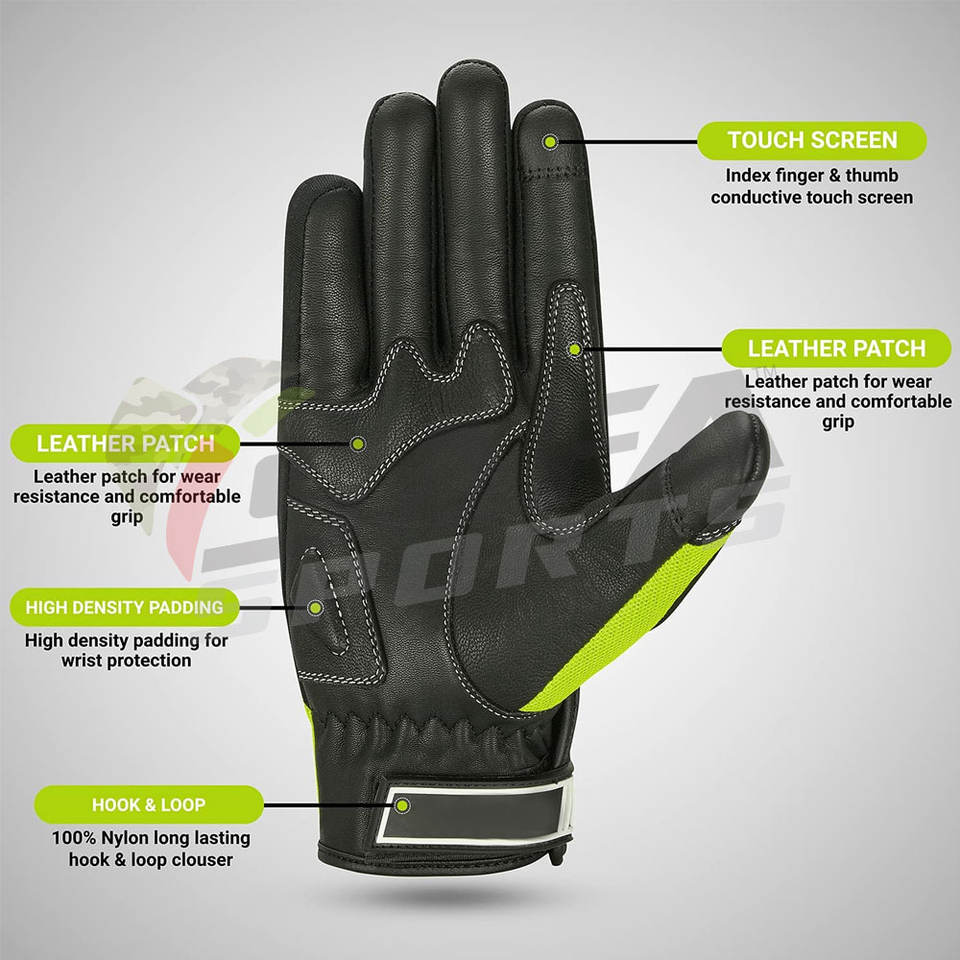 Gants de course durables à doigts entiers pour hommes en cuir textile imperméable de haute qualité avec fonction de chaleur