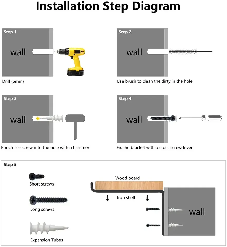 Supports muraux en forme de Z en métal durable avec un design de support robuste, idéal pour les étagères, le rangement et l'utilisation au bureau à domicile