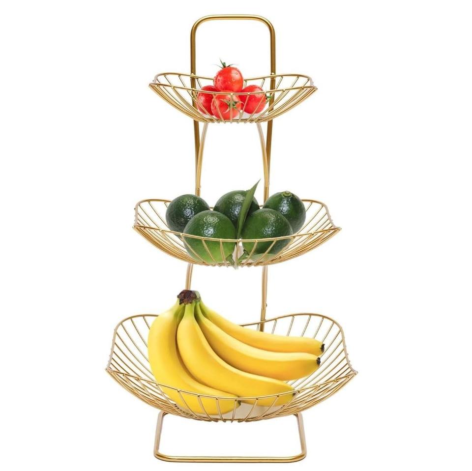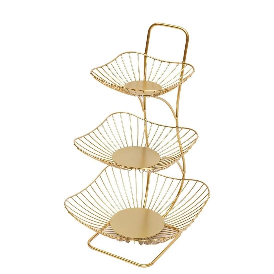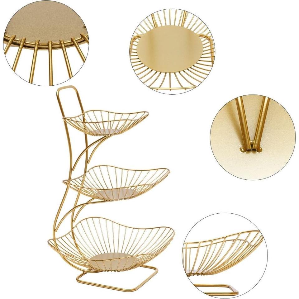Panier à fruits et légumes multi-usages en métal durable, couleur or, 3 niveaux, écologique, fait main, pour comptoir