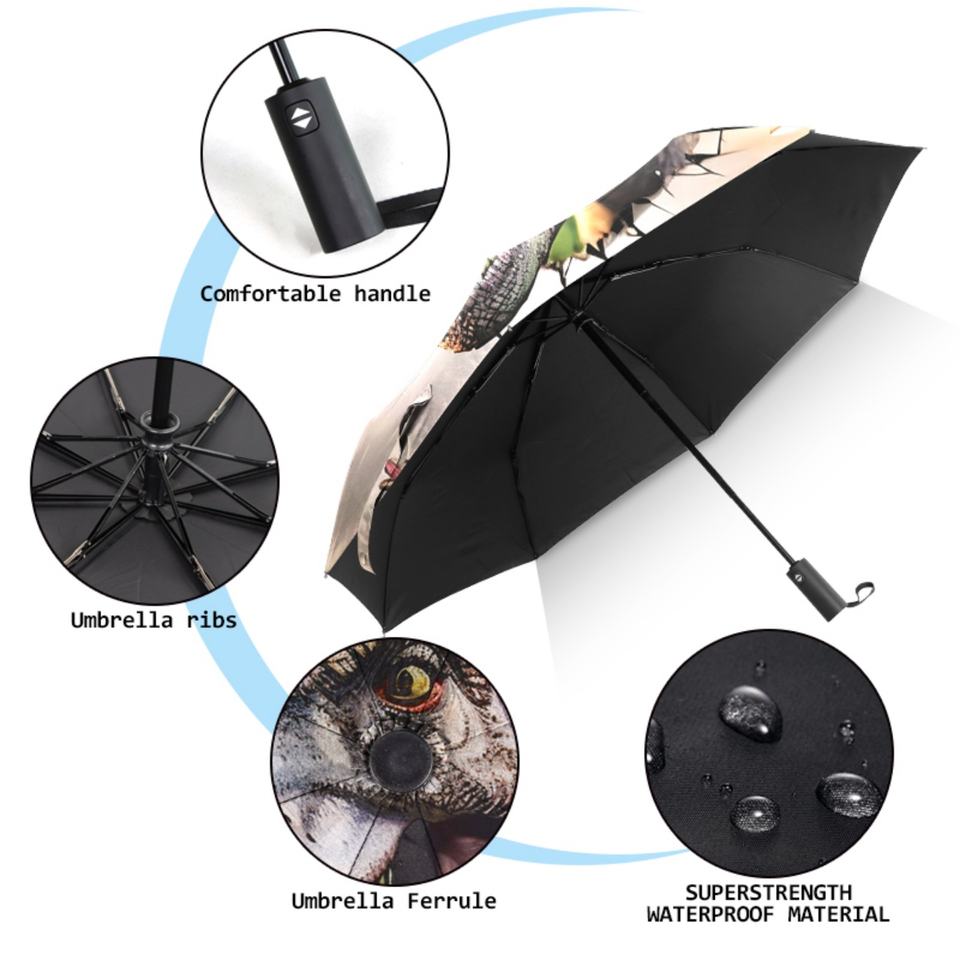 Parapluie pliant 3D moderne et durable, entièrement automatique, en pongé, avec protection UV et baleines en fibre de verre, idéal pour les voyages et la pluie