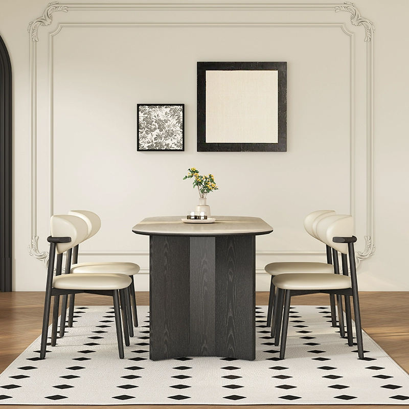 Ensemble de table à manger rectangulaire en bois moderne et durable avec 6 chaises pour hôtel, villa ou appartement
