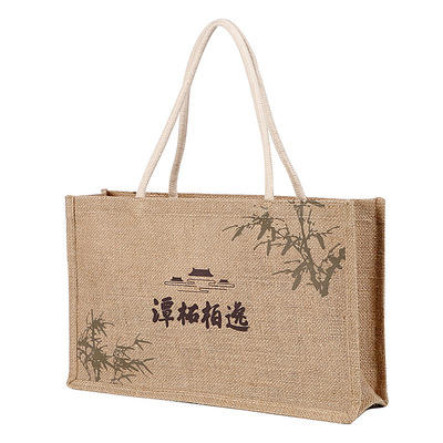 Durable Organic Burlap and Jute Hemp Shopping Tote Eco-Friendly Natural Simple Sustainable CartoonClick