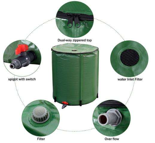 Réservoir d'eau de pluie en PVC durable Keystar KSD-010, design pliable multifonctionnel pour la collecte d'eau de pluie avec arroseur escamotable