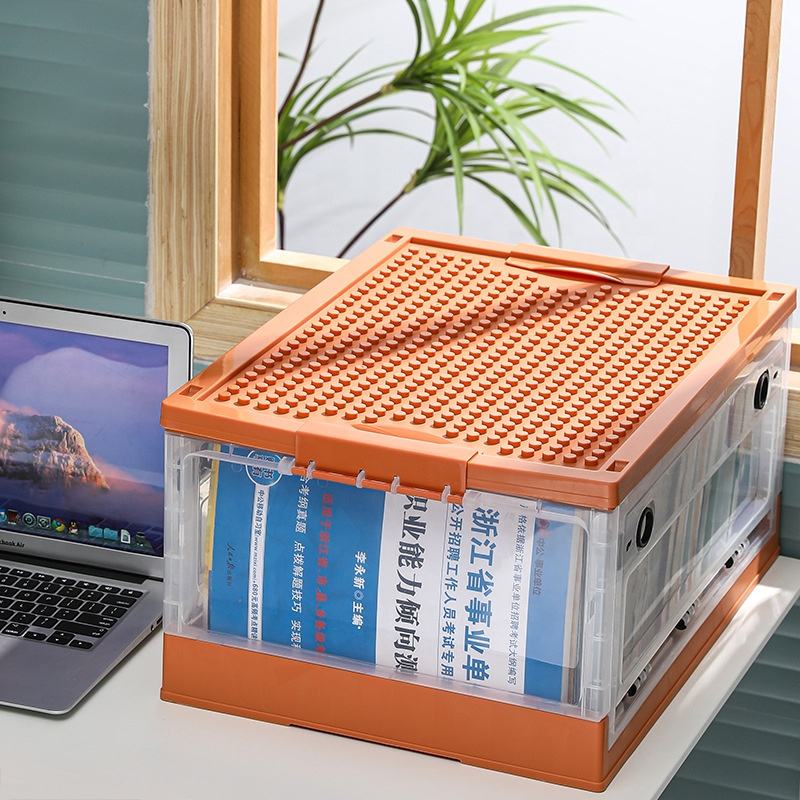 Snacks vêtements jouet organisateur boîte porte latérale peut être empilé avec roue assemblé conteneur de stockage pliant