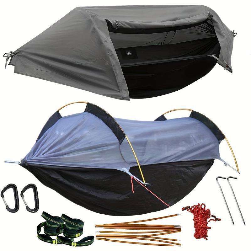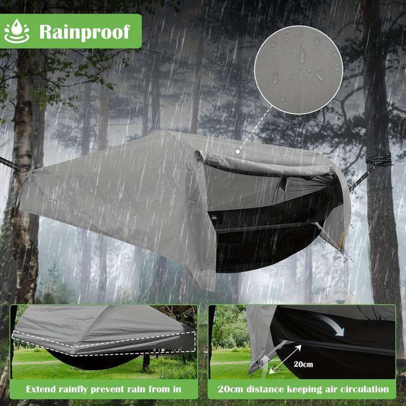 Hamac durable, portable et léger avec moustiquaire et housse de pluie, en tissu, trois en un, pour le camping et la randonnée