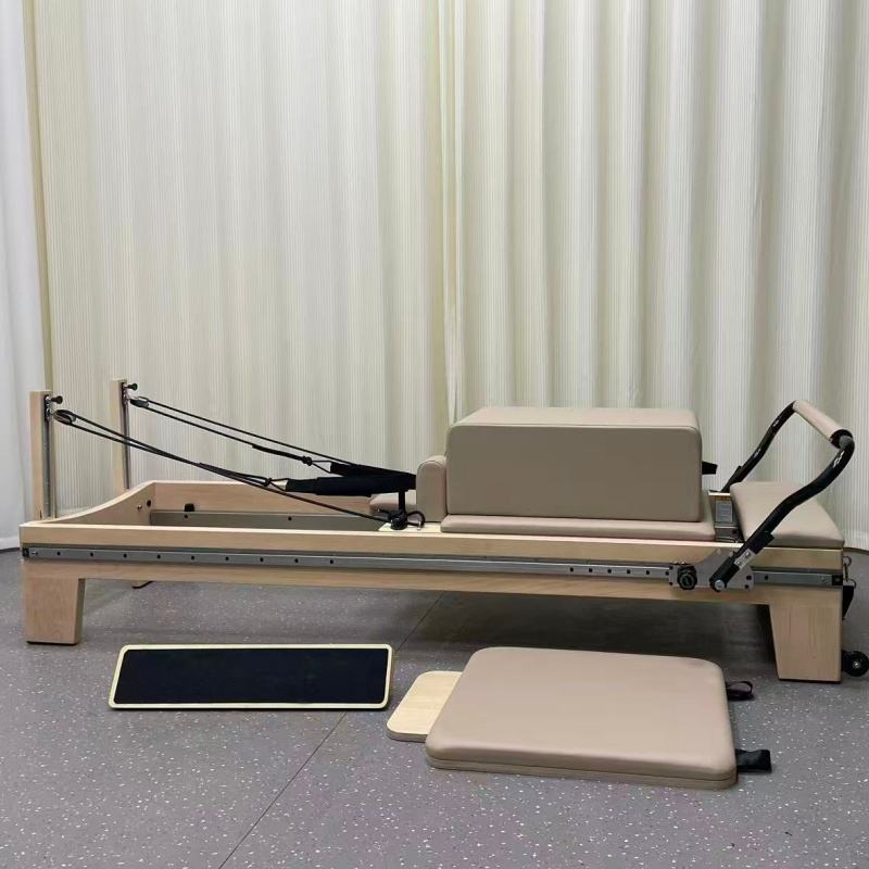 Reformer de Pilates en bois d'érable durable et portable pour salle de sport et studio, usage commercial, rail lisse, barre de pieds Infinity