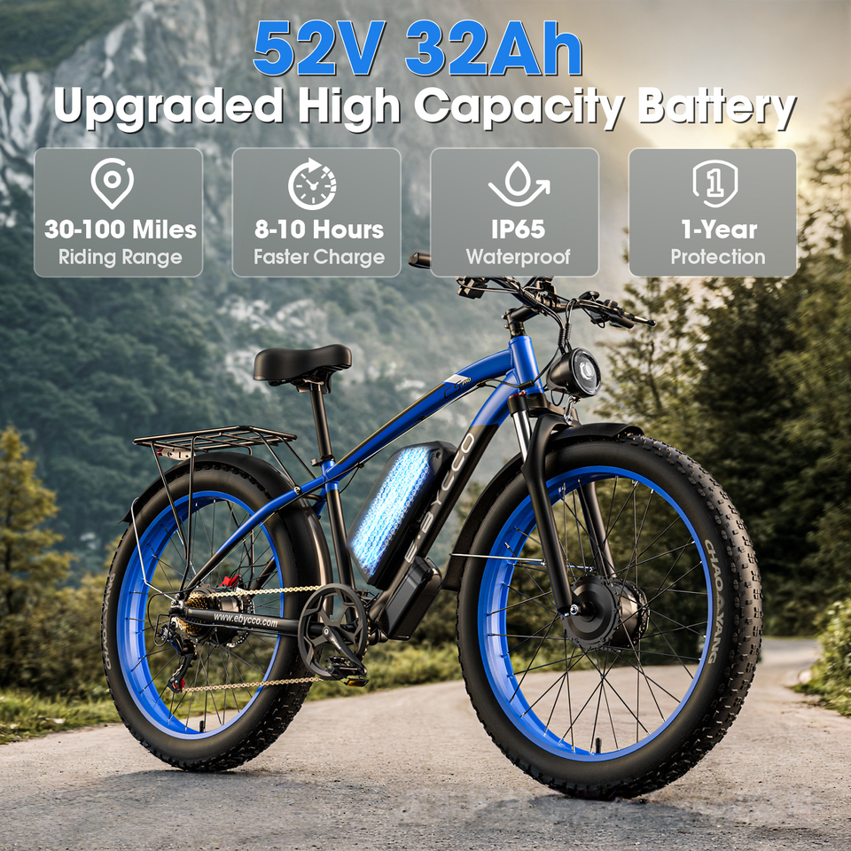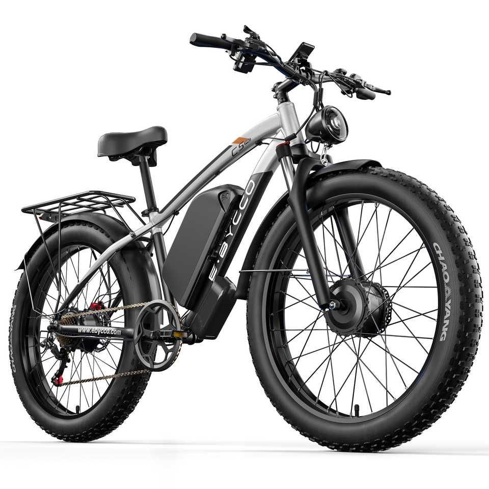 Vélo de montagne électrique robuste et puissant avec pneus larges 26*4.0, double batterie au lithium 52V 4000W, cadre en alliage d'aluminium, freins à disque hydrauliques souples