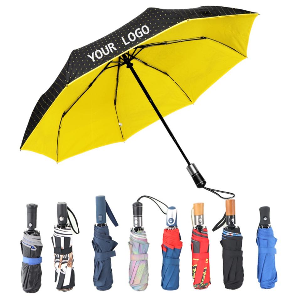 Parapluie compact moderne en nylon à trois plis automatique avec revêtement de protection UV