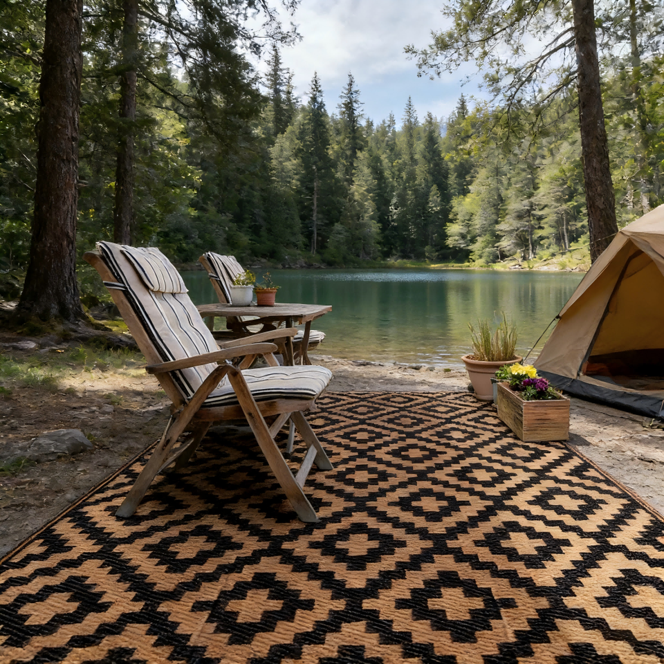 Tapis de camping réversible et durable pour l'extérieur, 100% polypropylène, tapis de patio pour camping-car