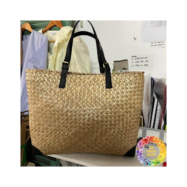 Durable Seagrass Tote Bag Handwoven Straw Purse with Inner Pocket Ideal for Vacation Trips and Daily Outdoor Use