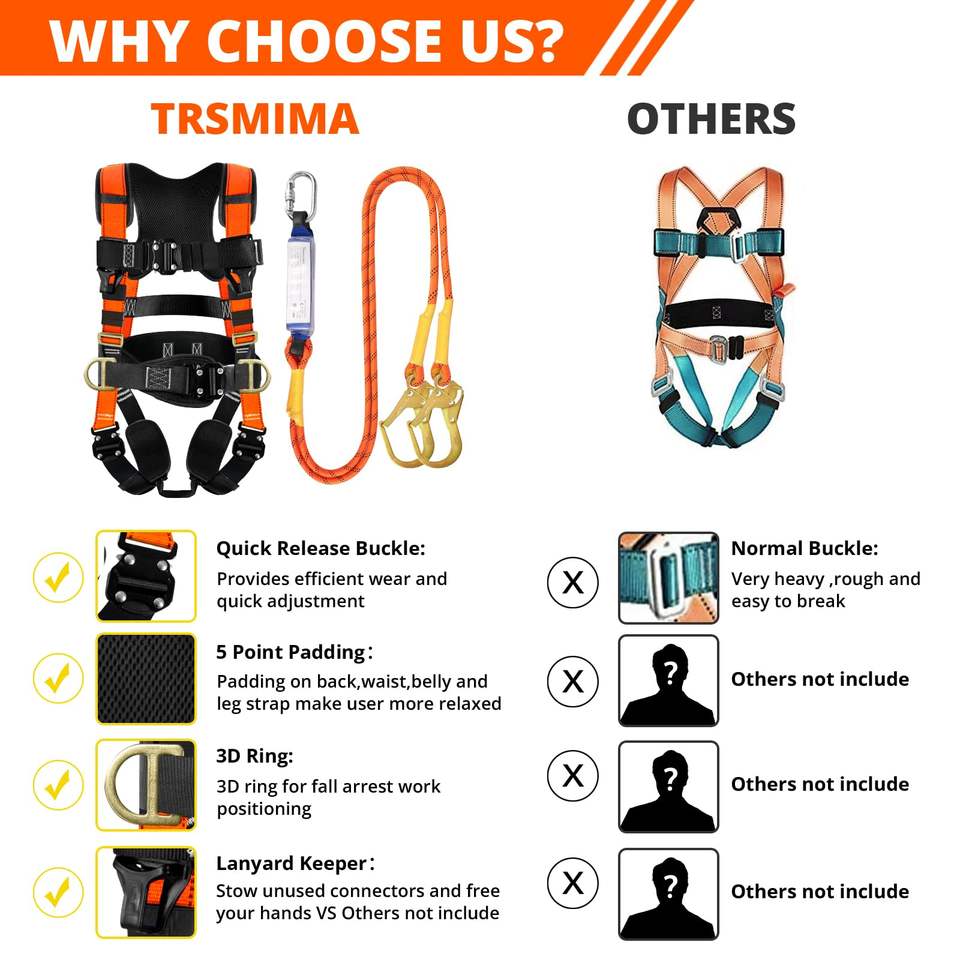 Harnais de sécurité de travail durable, absorbant les chocs, pour travaux en hauteur
