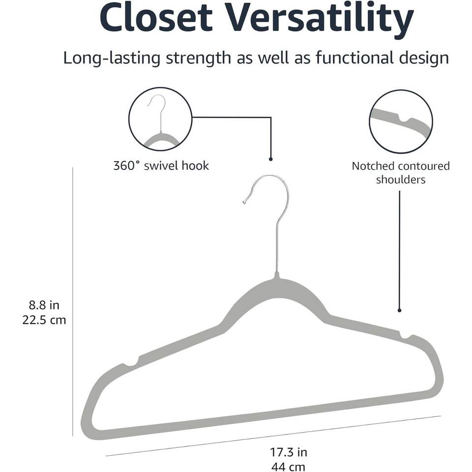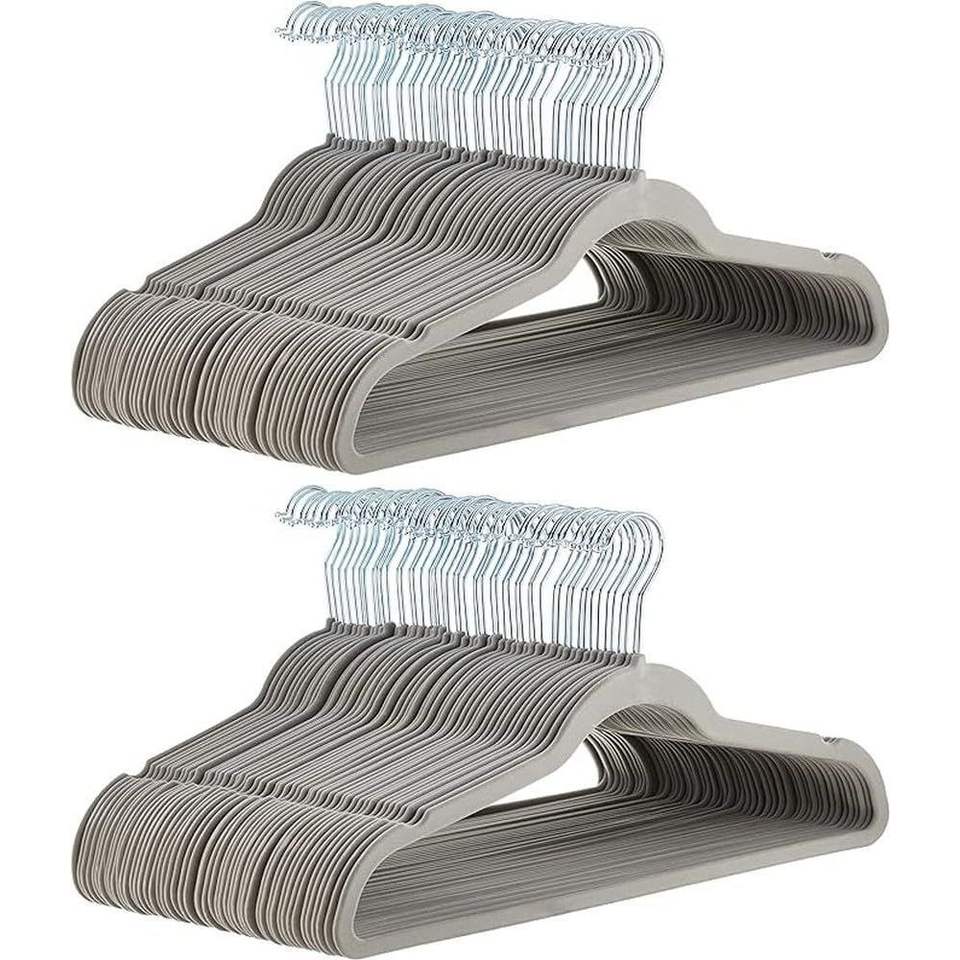 Cintres durables et fins en velours antidérapants pour placard, gris/argent, lot de 100 pour manteaux, pantalons, chemises