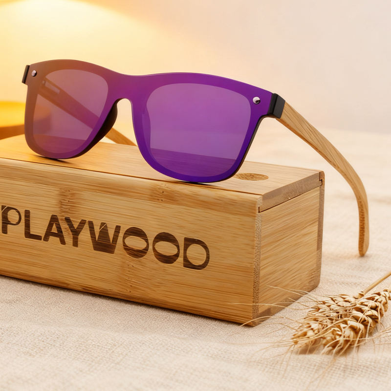 Lunettes de soleil en bois sur mesure avec charnière à ressort durable et logo – Verre monobloc pour le style urbain et les pique-niques du week-end