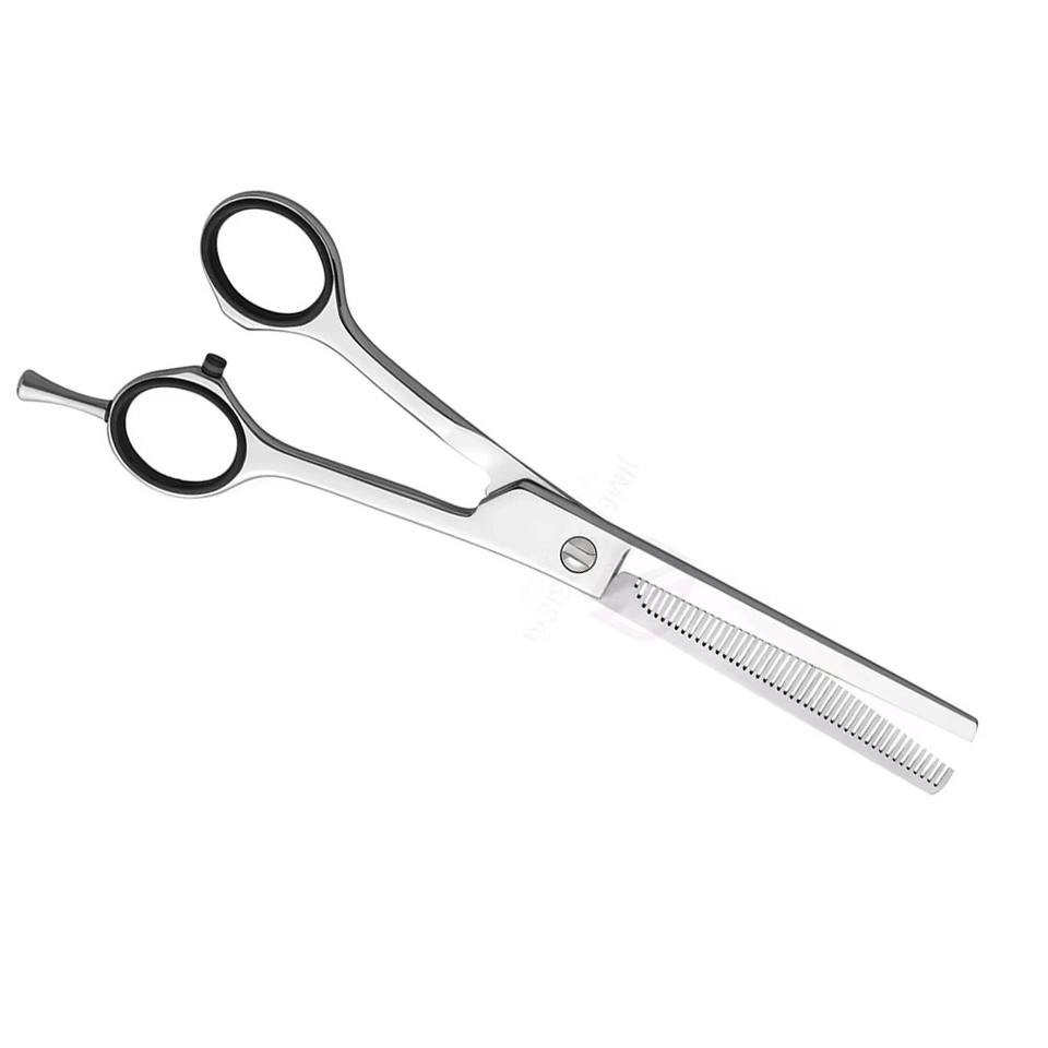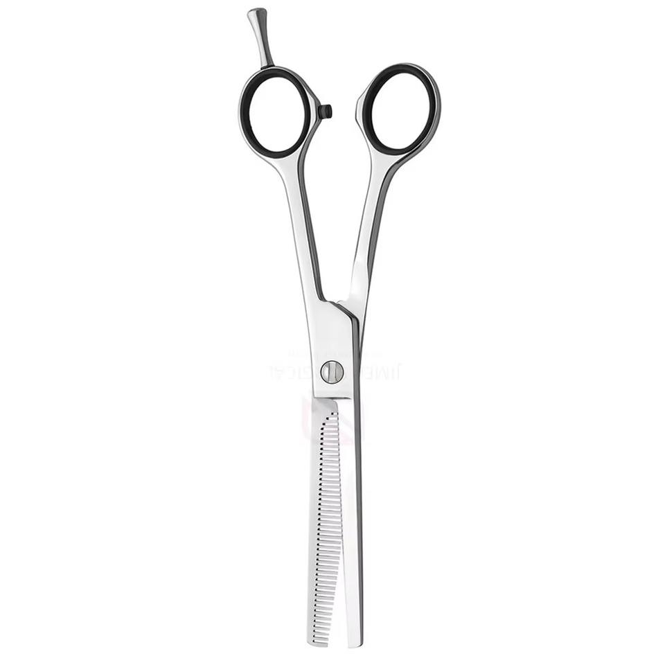 Ciseaux de coiffure professionnels en acier inoxydable durable avec repose-doigts, lames émoussées, outils de coupe de cheveux de haute qualité pour salon de beauté