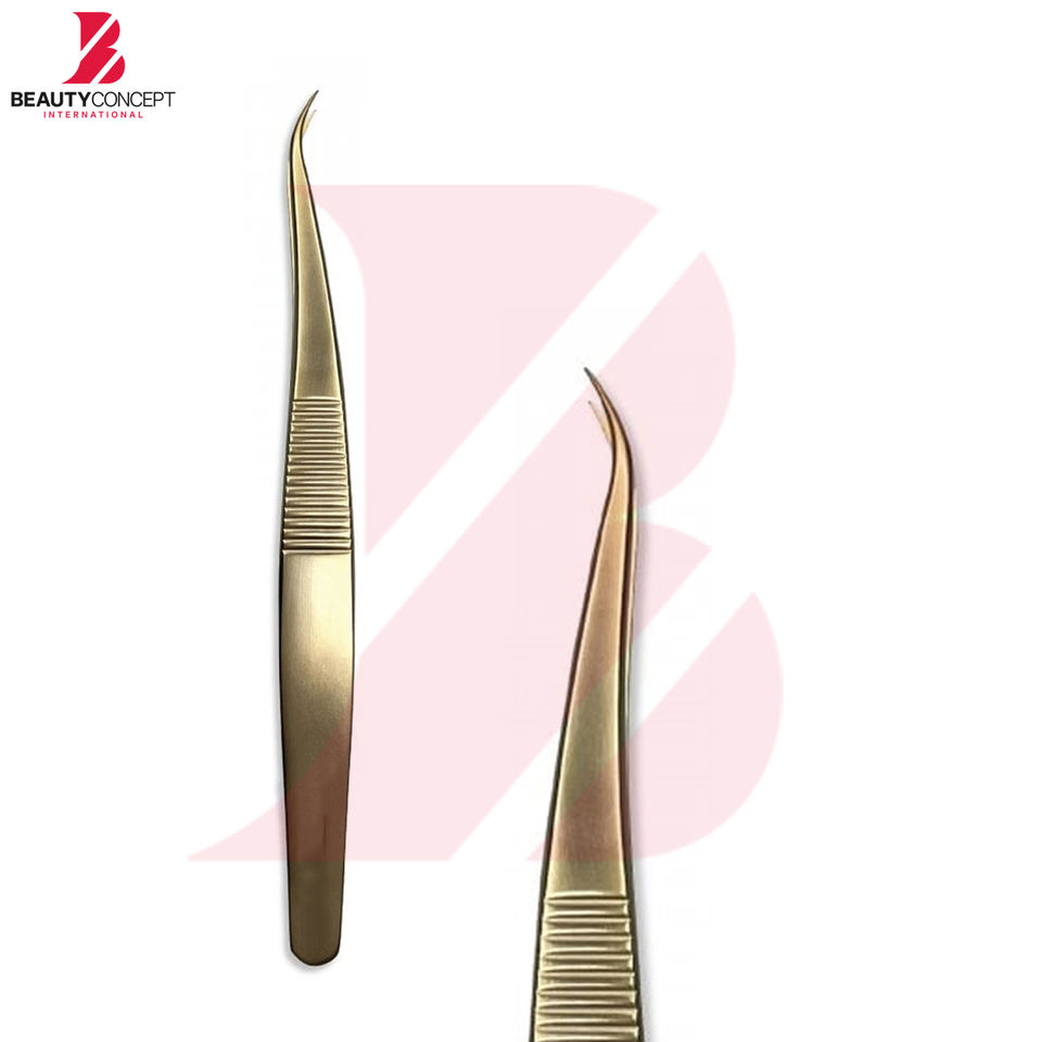 Outils de beauté durables en acier inoxydable avec faible MOQ, qualité supérieure, haute précision, ensemble de pinces à extensions de cils plaquées or